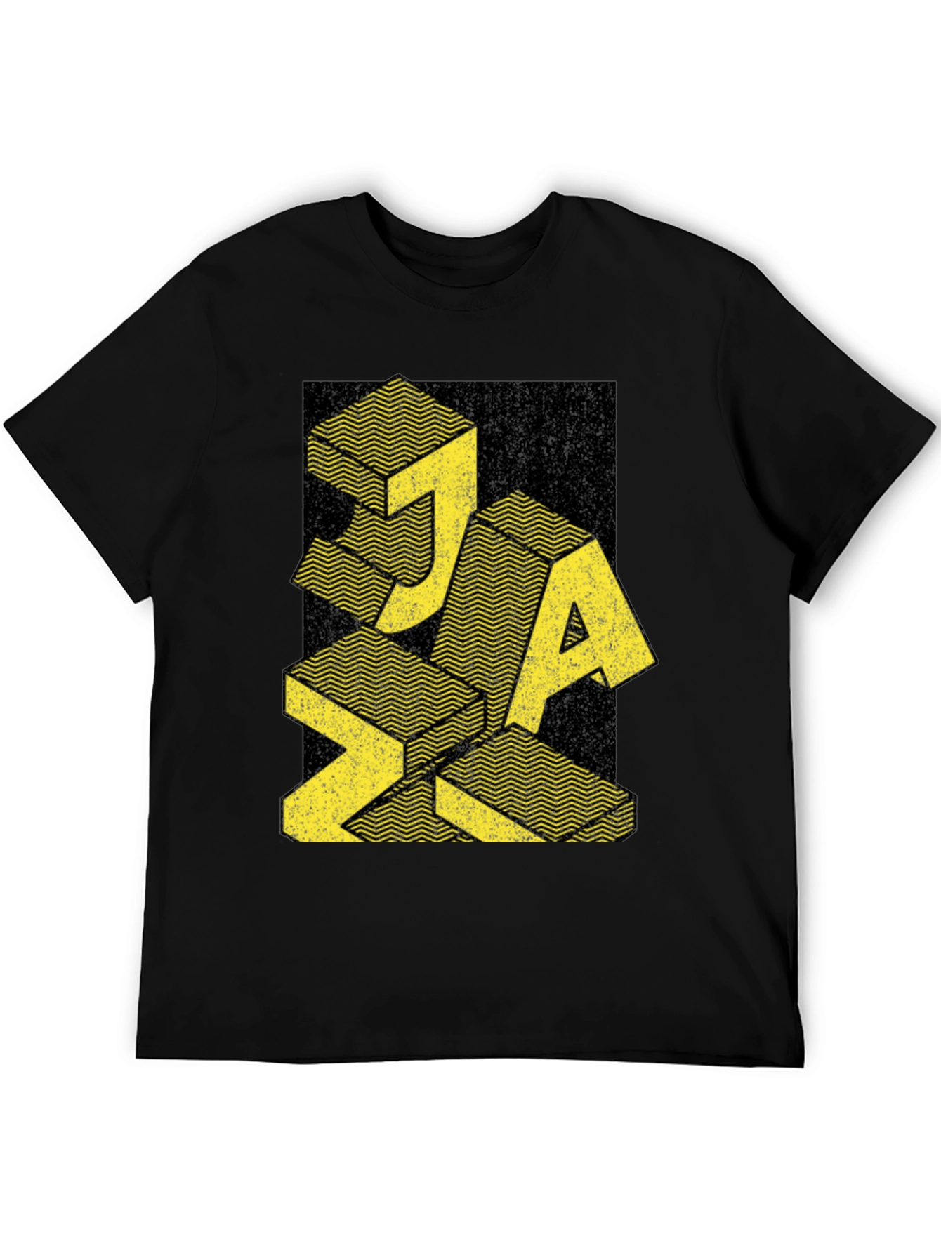 This stylish black t-shirt features a unique, eye-catching graphic print. The print showcases an abstract geometric design in yellow, creating a bold and modern look. The t-shirt appears to be made from a comfortable, soft fabric, perfect for everyday wear. The design lends itself well to casual outings, concerts, or any occasion where you want to express your individual style. Pair it with jeans, shorts, or chinos for a versatile and fashionable outfit. Make a statement with this standout tee that blends artistic flair with everyday comfort. It's a great addition to any modern wardrobe.