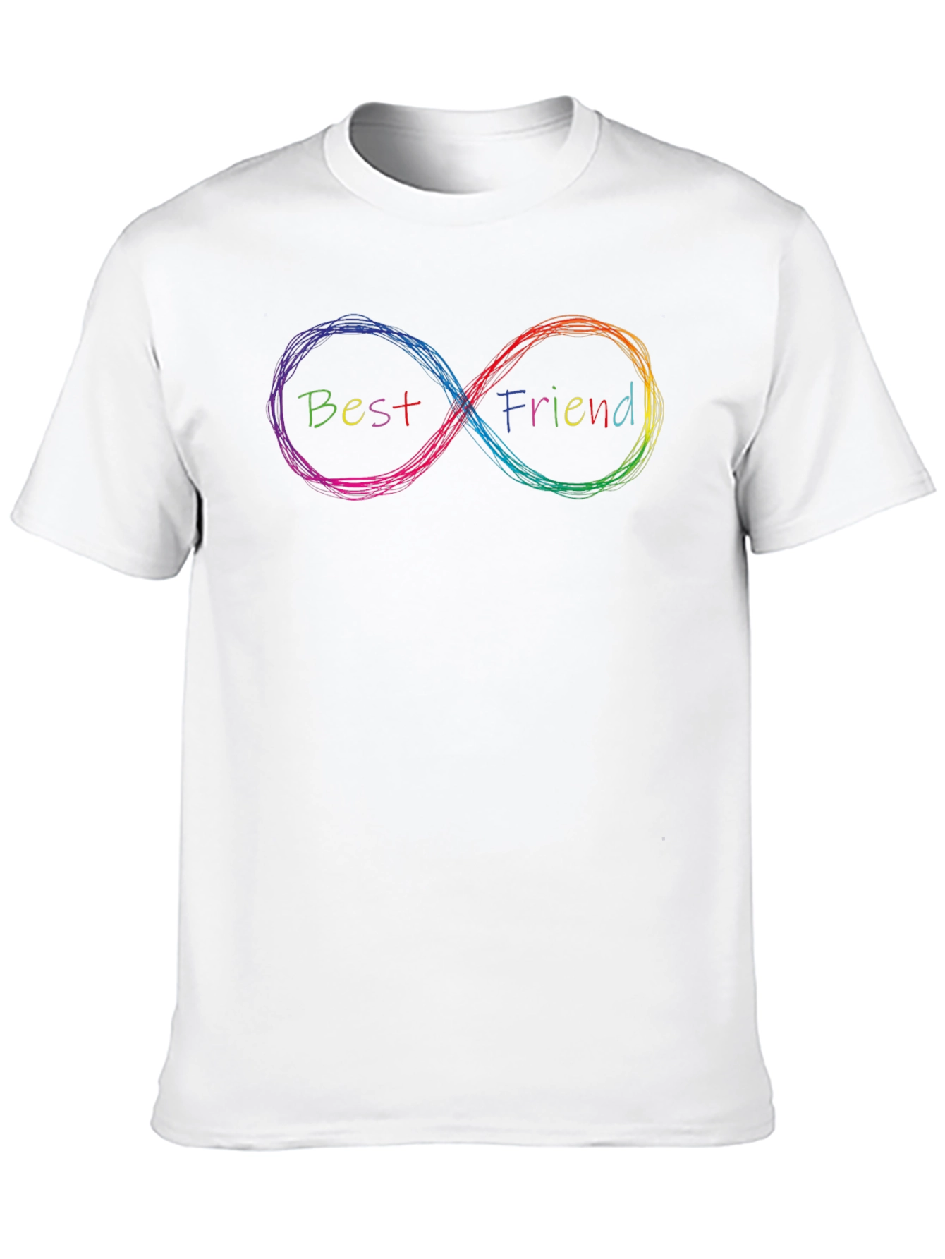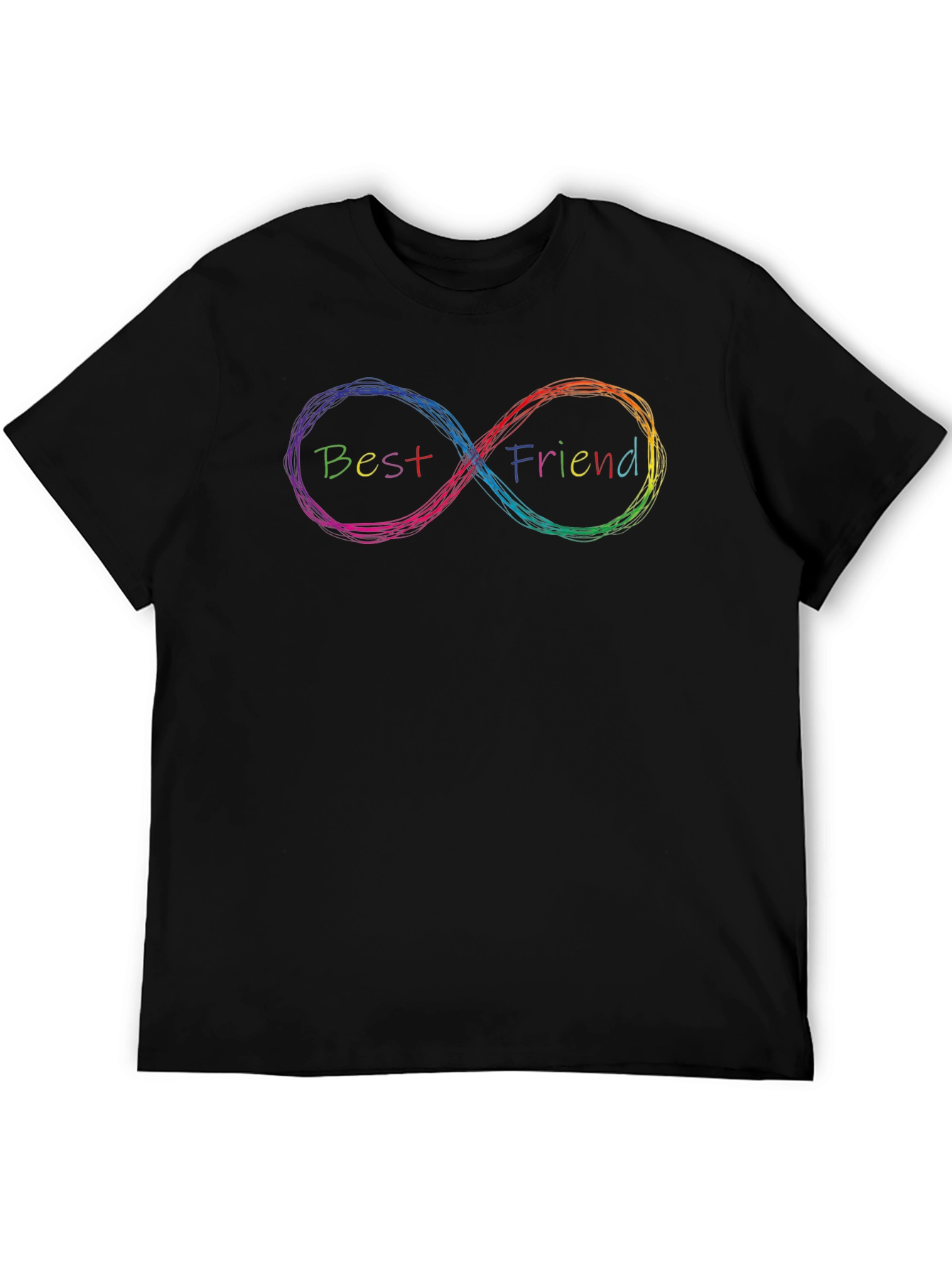 Show off your bond with this fun Best Friend T-shirt. This classic black tee features a colorful infinity symbol with the words "Best" and "Friend" written on either side. The tee is soft, casual and comfortable with short sleeves and a relaxed fit. Pair this shirt with jeans or shorts and is great for everyday wear. This tee makes a thoughtful gift for best friends to show their connection and makes a great birthday gift, anniversary gift, or holiday gift.