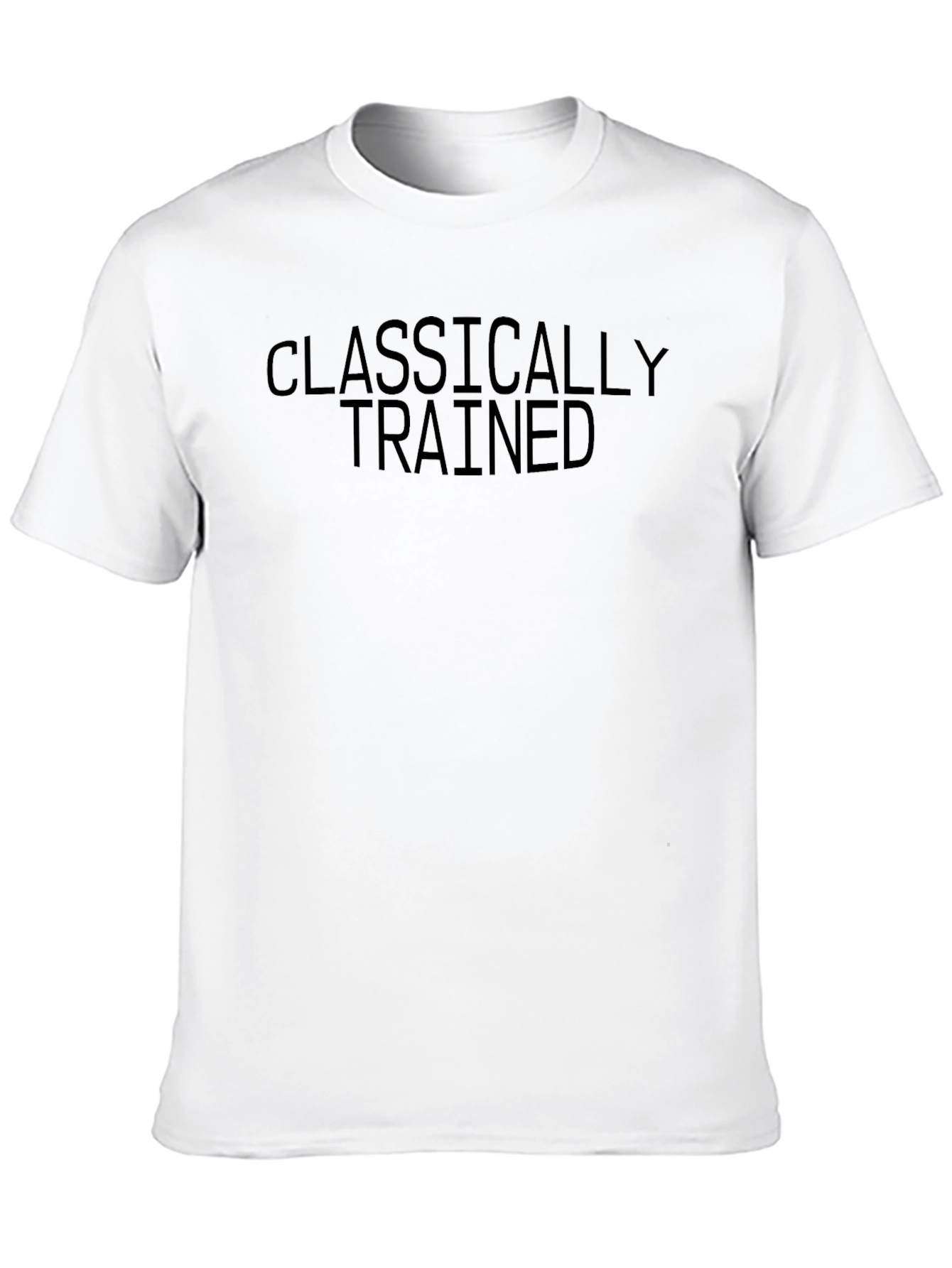 Show off your unique style with this striking black t-shirt. Featuring the text "CLASSICALLY TRAINED" across the chest, this tee makes a bold statement. Constructed from what appears to be a soft and breathable fabric, this tee offers both comfort and durability. The design is simple yet eye-catching, making it perfect for casual outings, workouts, or even as a fun conversation starter. Pair it with jeans, shorts, or your favorite athletic wear for a versatile look. This t-shirt is a must-have for anyone who wants to showcase their individuality with a touch of humor.