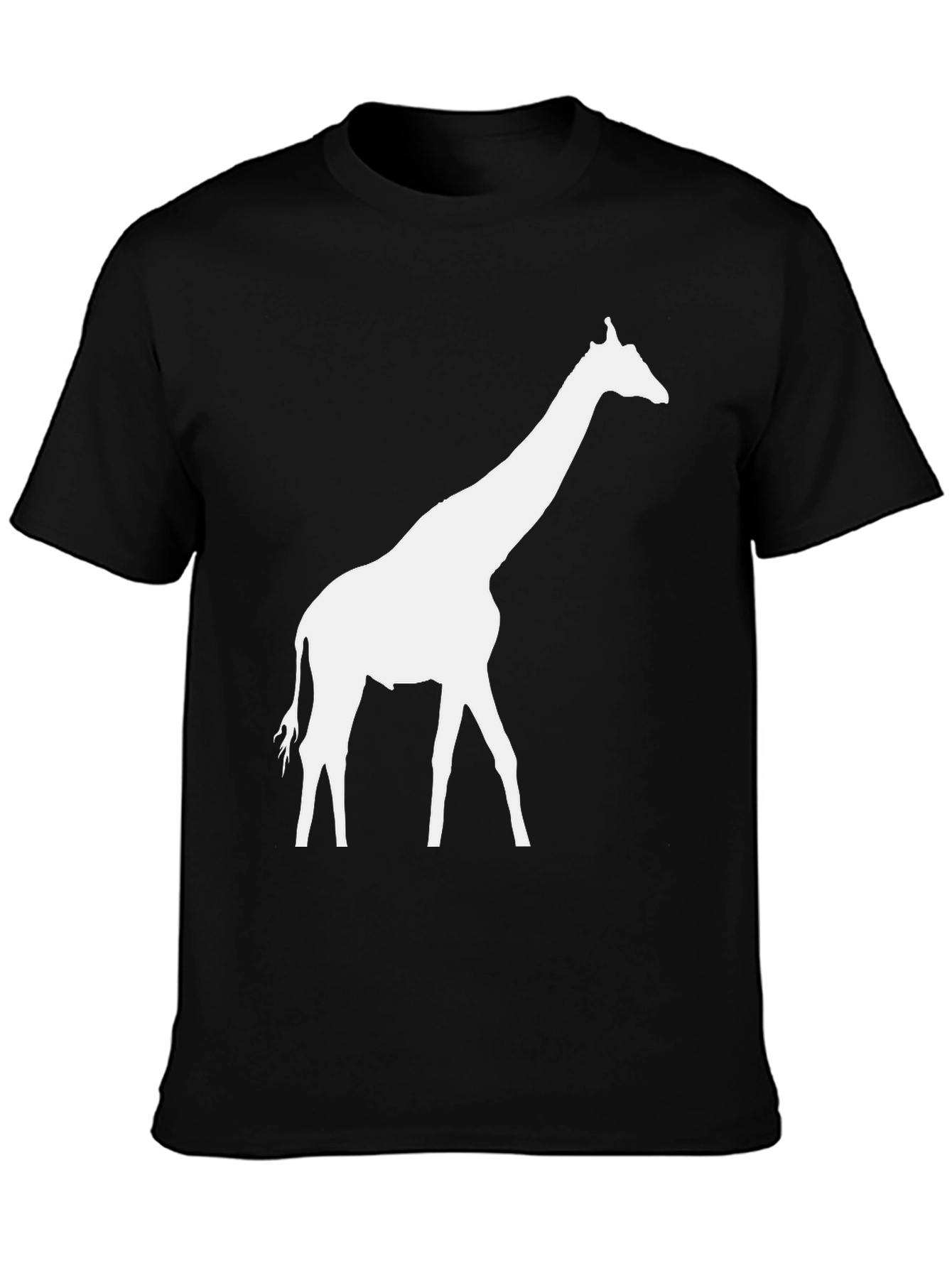 Show off your love for wildlife with this eye-catching black t-shirt. Featuring a bold, white giraffe silhouette, this tee is a stylish way to express your unique personality. The shirt appears to be made from a soft, comfortable material that is perfect for everyday wear. The simple design makes it easy to pair with jeans, shorts, or even dress it up with a blazer. Ideal for casual outings, weekend adventures, or just lounging around the house. Add a touch of the wild to your wardrobe with this must-have graphic tee!