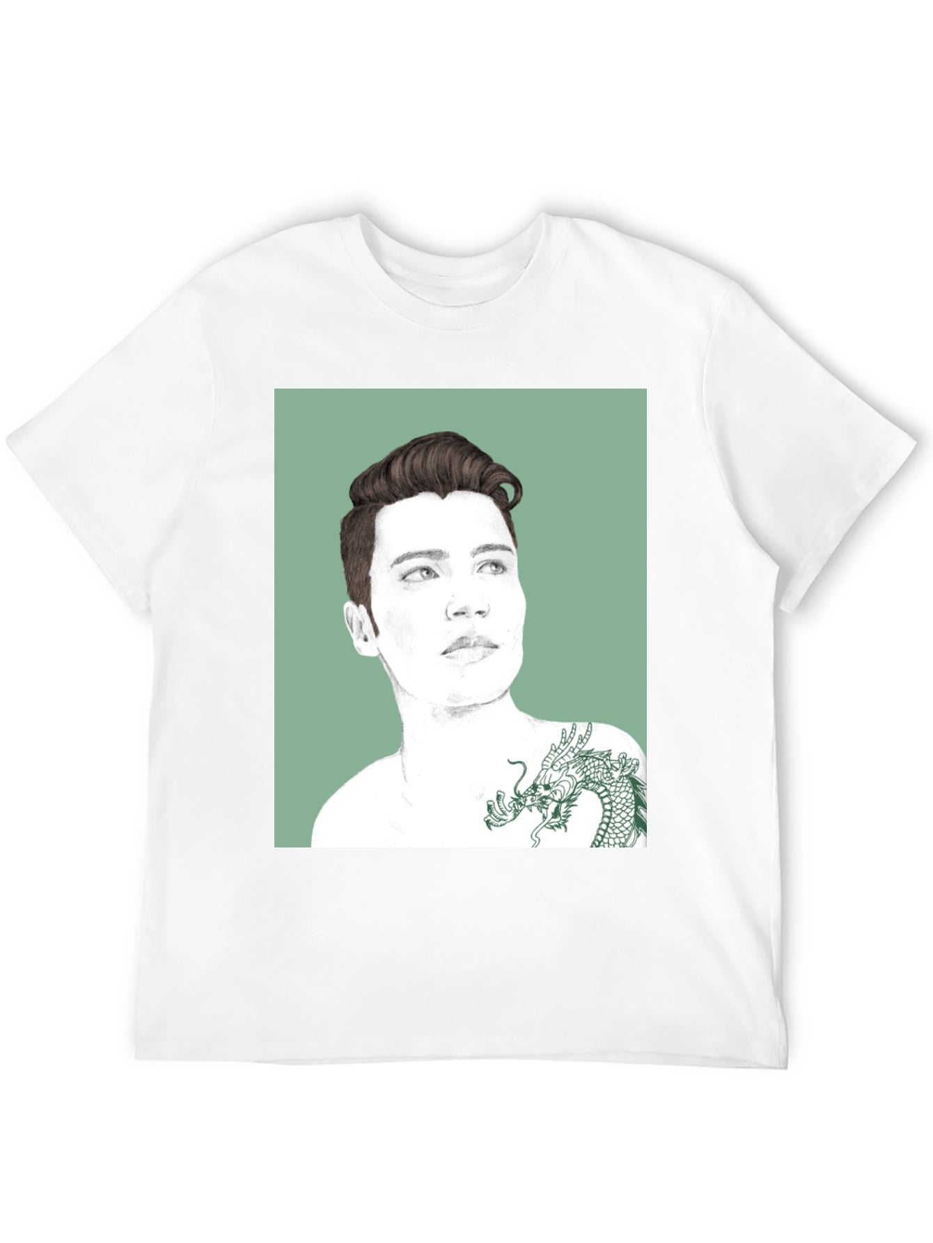 Show off your unique style with this eye-catching graphic tee! The shirt features a striking portrait of a man with a dragon tattoo over a solid color background. The design makes a bold statement. Made from comfortable materials, this tee is perfect for everyday wear. Pair it with your favorite jeans or shorts for a casual yet fashionable look. Whether you're hanging out with friends or hitting the town, this tee will definitely turn heads and add a touch of personality to your outfit.