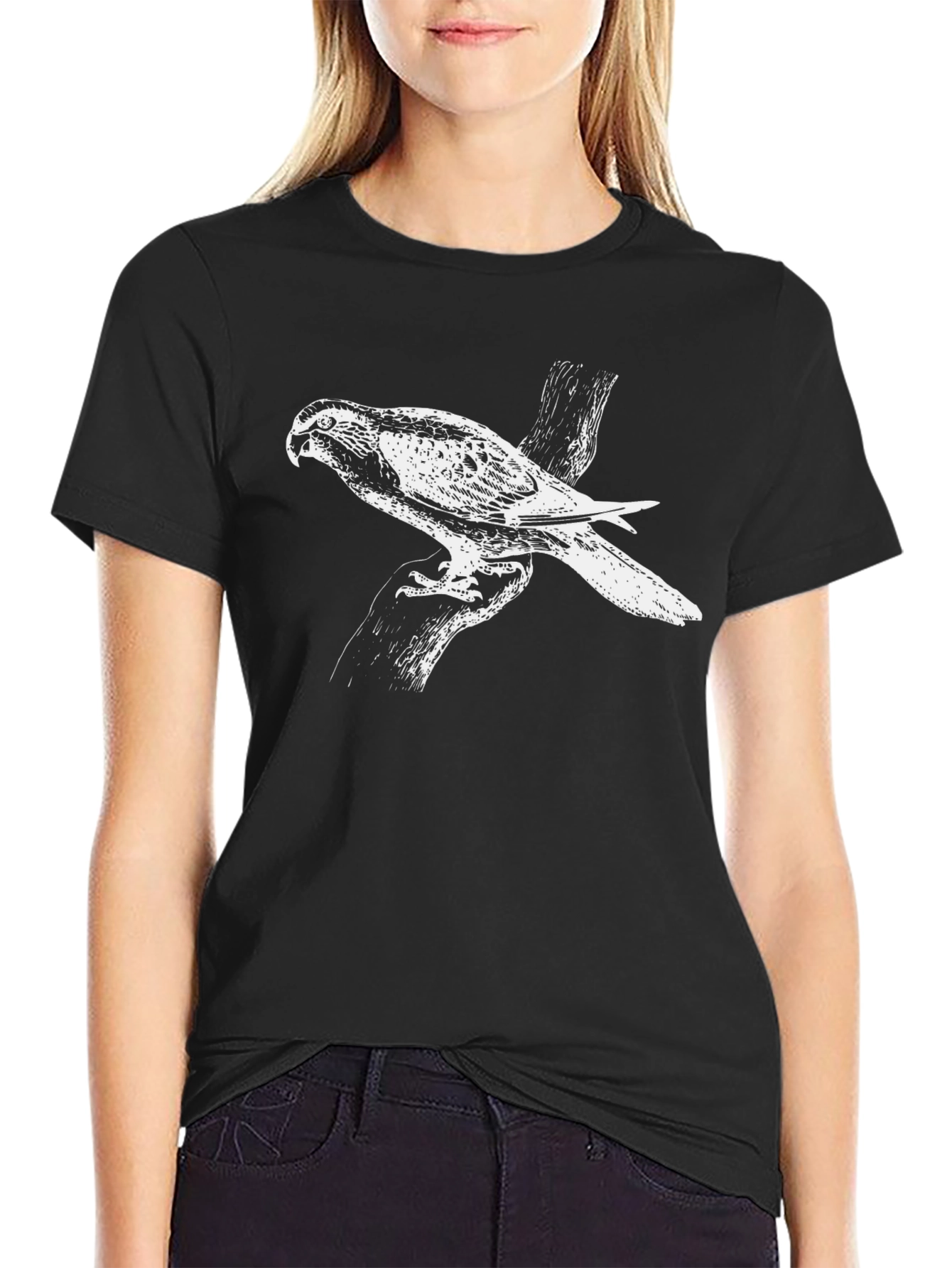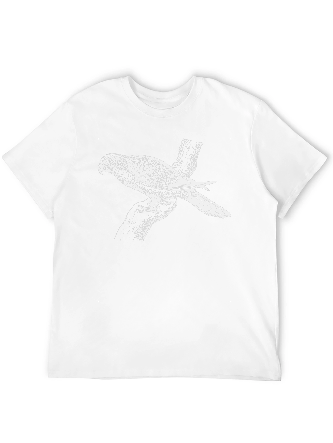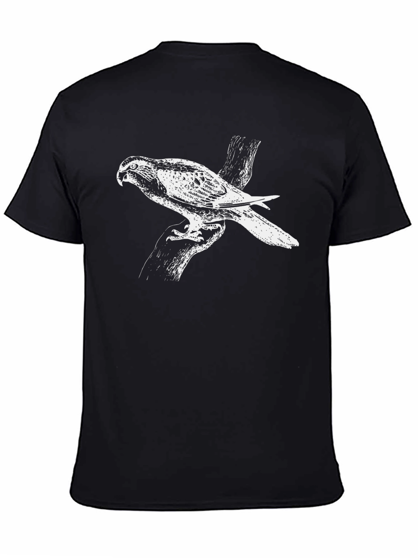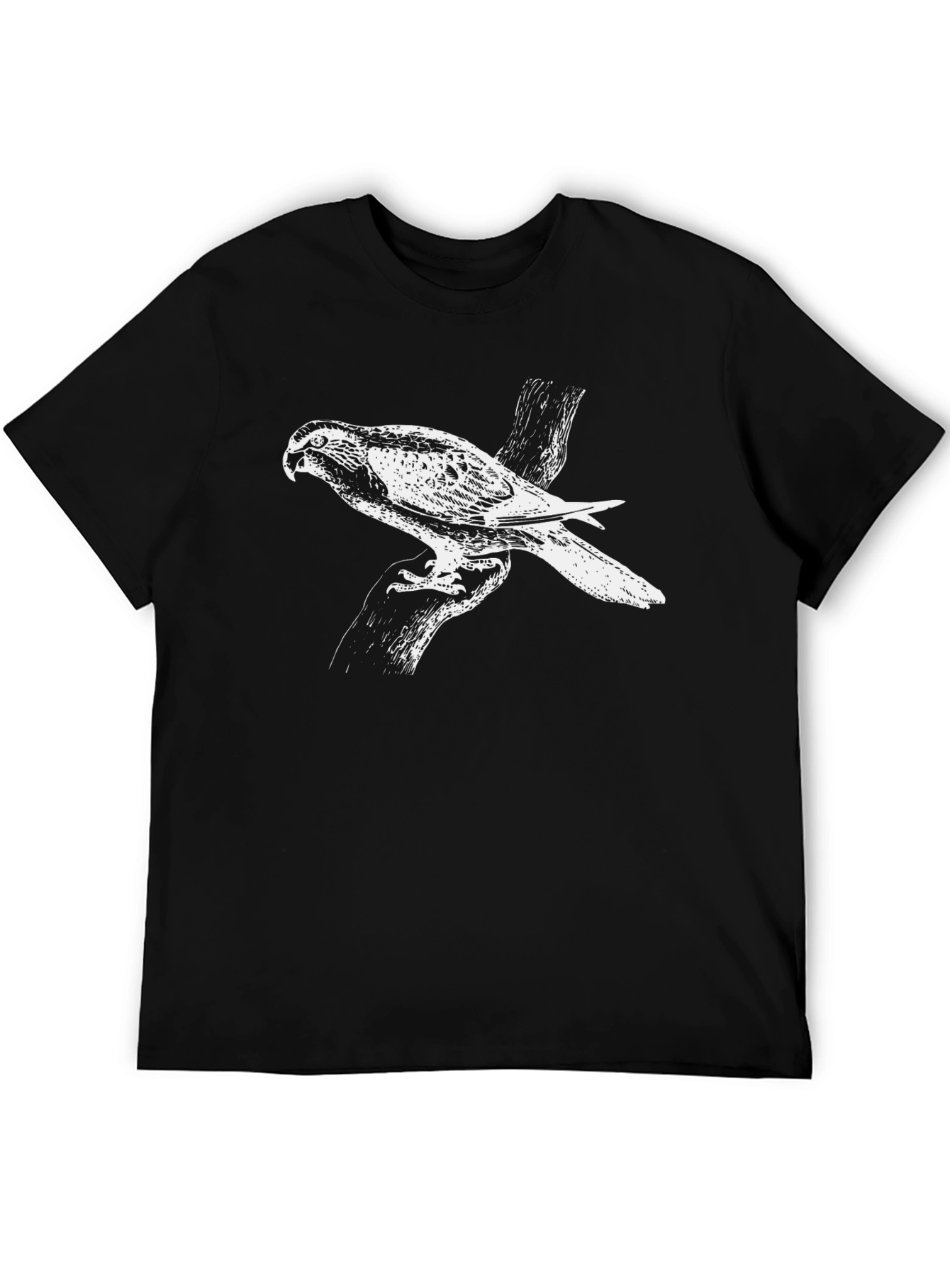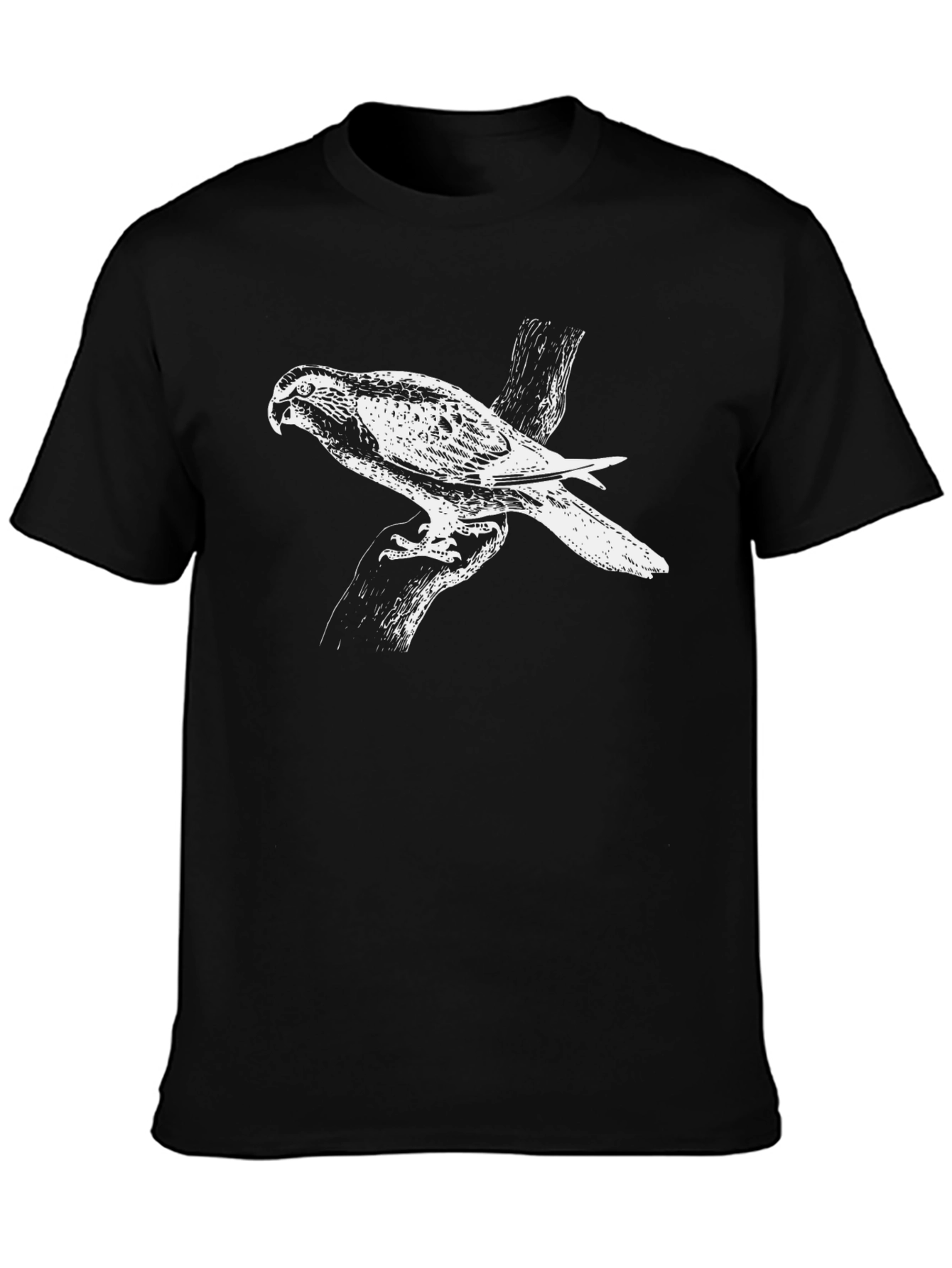 Showcase your love for wildlife with this striking black tee. The shirt features a detailed white graphic of a hawk perched on a branch. Made from soft and breathable fabric, this short-sleeve t-shirt offers both comfort and style. The classic crew neck design makes it versatile for casual wear, outdoor adventures, or birdwatching excursions. A unique nature-inspired addition to any wardrobe. Dress it up or down. Be the bird-man with this t-shirt today!