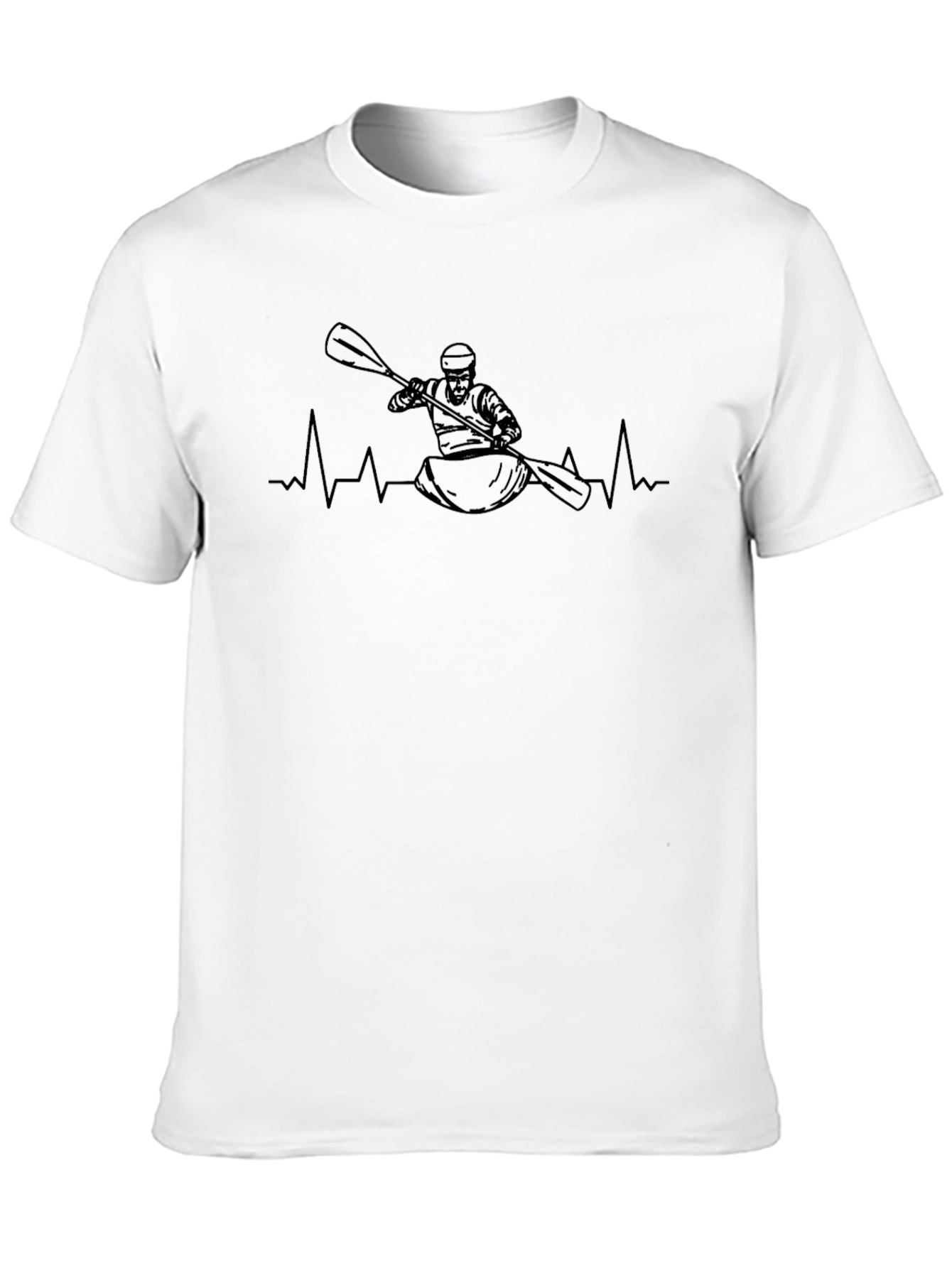 Showcase your passion for kayaking with this unique black cotton t-shirt! Featuring a minimalist line art design of a kayaker in action, integrated into a heartbeat rhythm, this shirt is perfect for outdoor enthusiasts and adventurers. The clean, simple graphic is both eye-catching and stylish, making it a great conversation starter. Made from soft, breathable cotton, this t-shirt offers superior comfort for everyday wear. Whether you're hitting the water or simply relaxing, this Kayaker Heartbeat Tee lets you express your love for the sport in style. Get yours today and wear your passion!