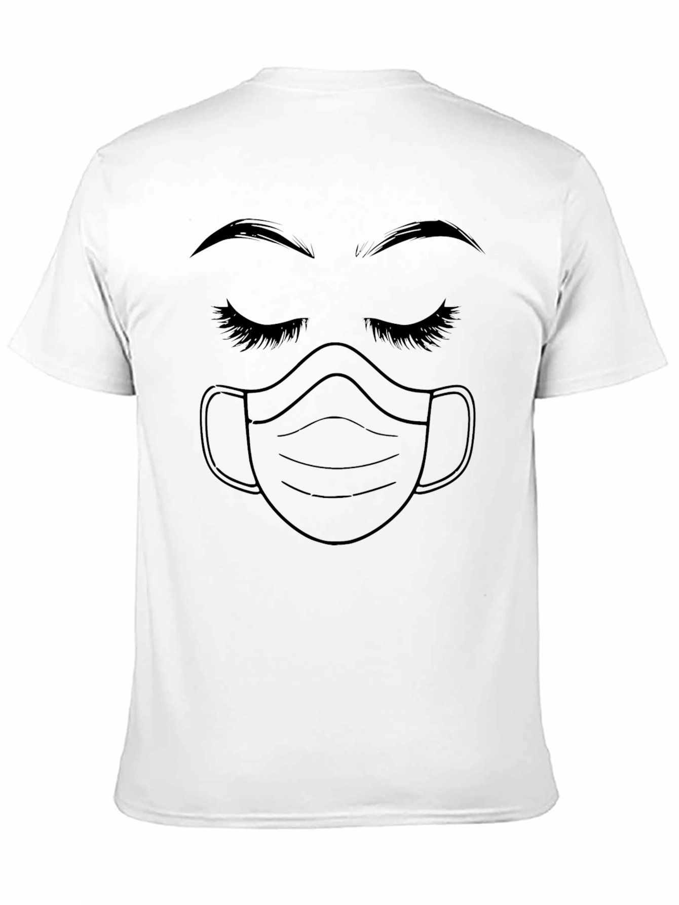 Stay stylish and safe with this unique graphic tee! Featuring a minimalist design of elegantly closed eyes, long lashes, and a sleek face mask, this shirt adds a touch of modern flair to your everyday wardrobe. The design is printed on a soft, breathable black fabric for maximum comfort and wearability. Perfect for expressing your personality while promoting safety, this tee is ideal for casual outings, social gatherings, or simply relaxing at home. Add a touch of unique style to your clothing collection! A fashionable statement piece.