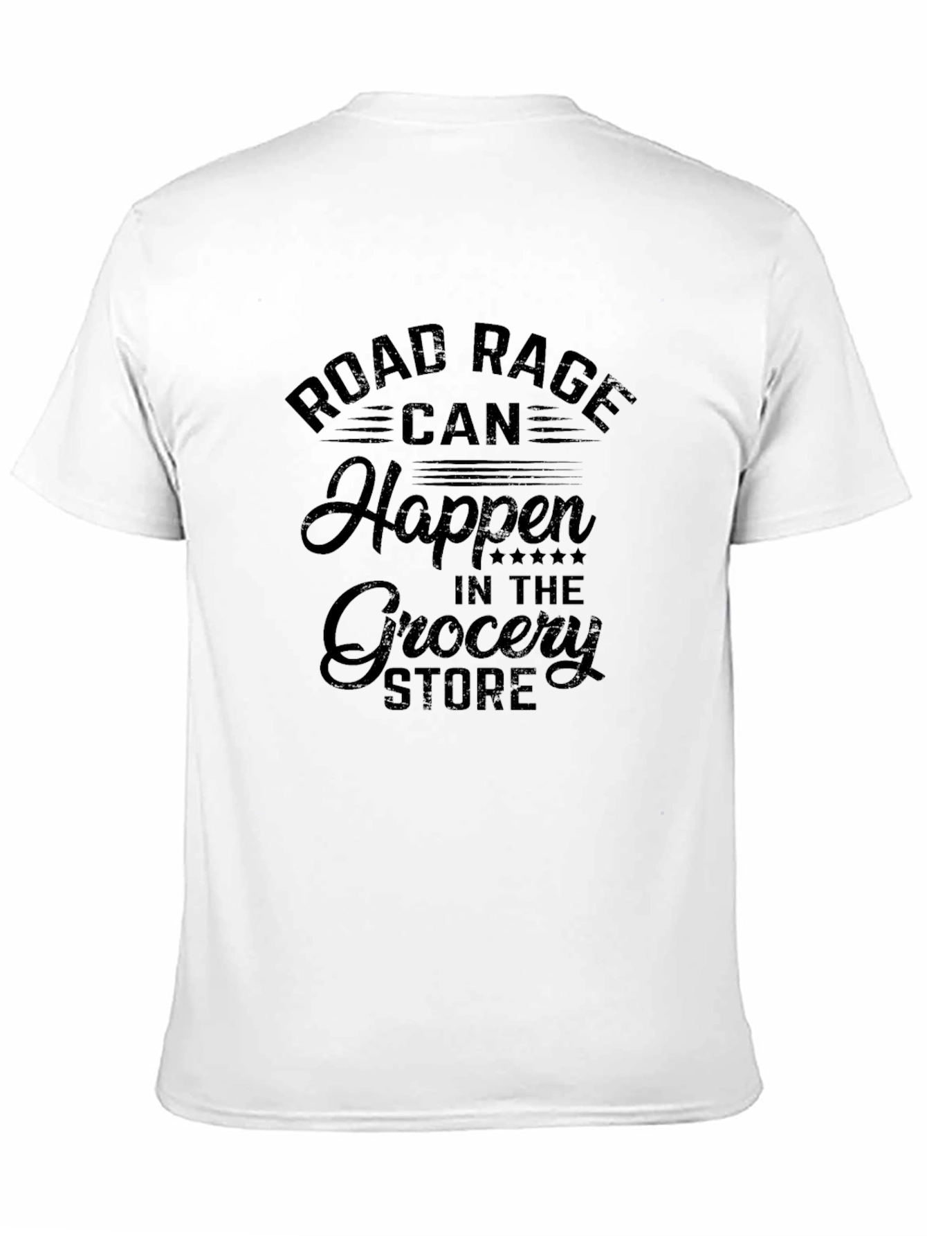 This black t-shirt features a humorous quote: "Road Rage Can Happen in the Grocery Store". The message is displayed in a bold, distressed font, giving it a vintage, edgy appeal. Made from a comfortable material, this tee is perfect for casual wear, running errands, or expressing your unique sense of humor. Whether you're a fan of witty sayings or just looking for a conversation starter, this t-shirt is a standout piece for anyone's wardrobe. Wear it to the grocery store and add a touch of levity to your shopping trips!