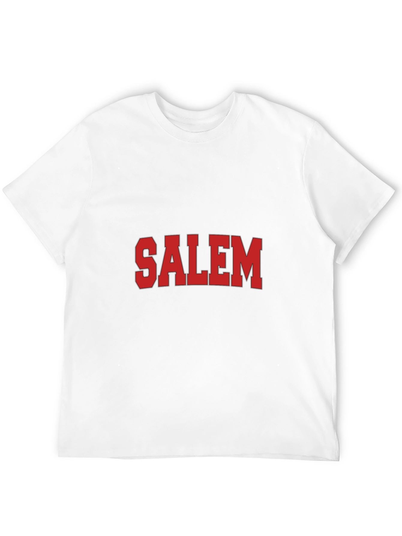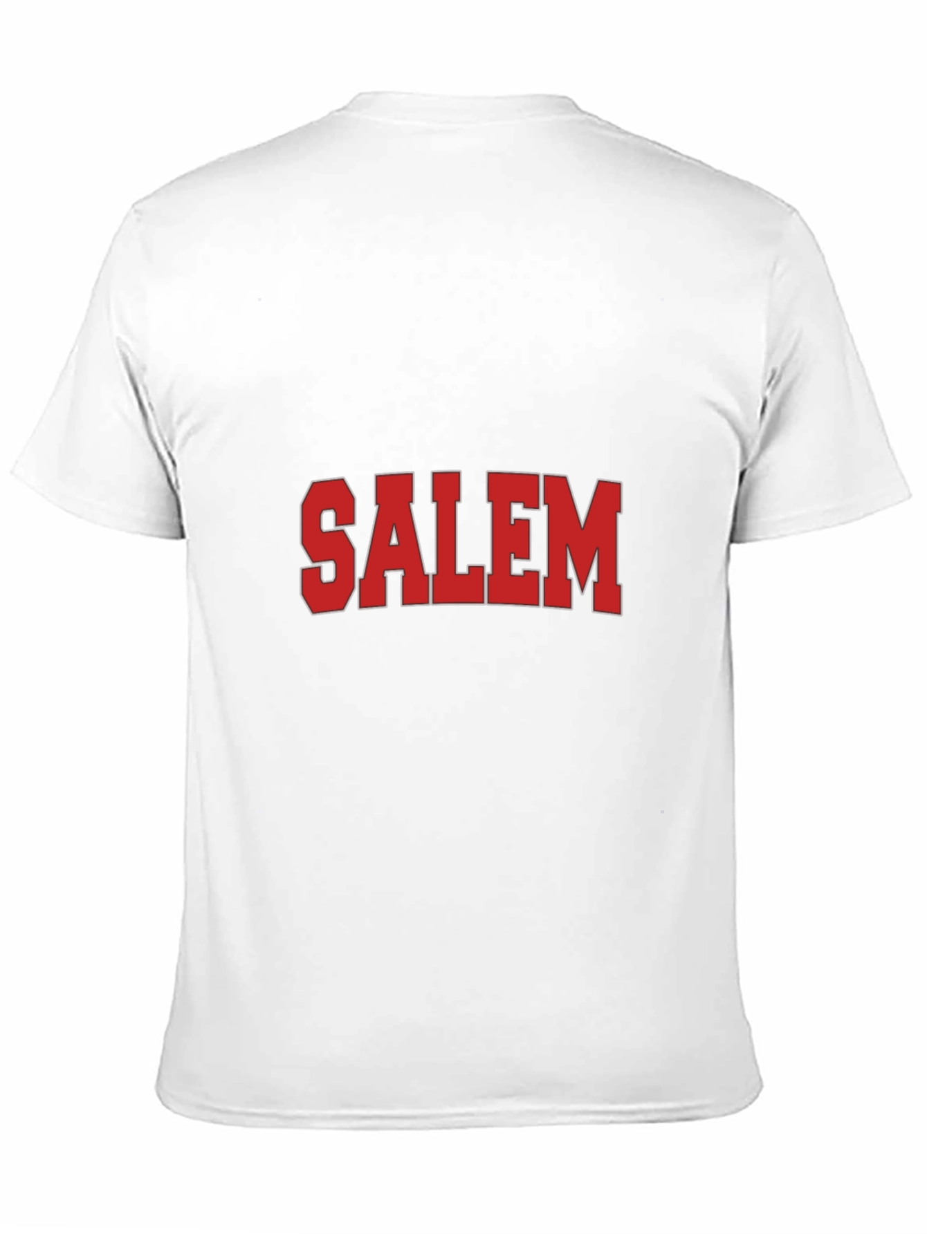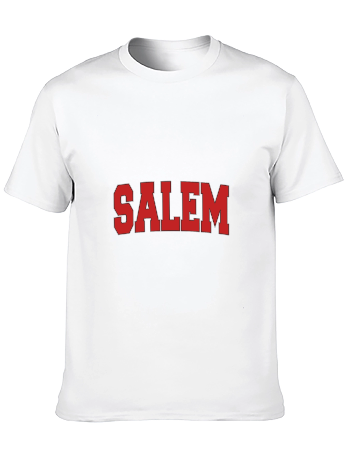 Showcase your style with this striking black graphic tee. The shirt features the word "SALEM" in a bold, eye-catching red font with a subtle white outline, giving it a classic collegiate look. Made from what appears to be a soft, comfortable cotton blend, this t-shirt is perfect for everyday wear. The relaxed fit makes it ideal for casual outings, sporting events, or simply lounging at home. Pair it with jeans or shorts for a cool, effortless vibe. Express your individuality with this statement piece!