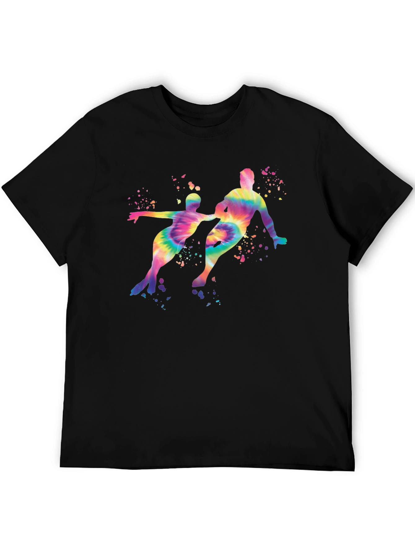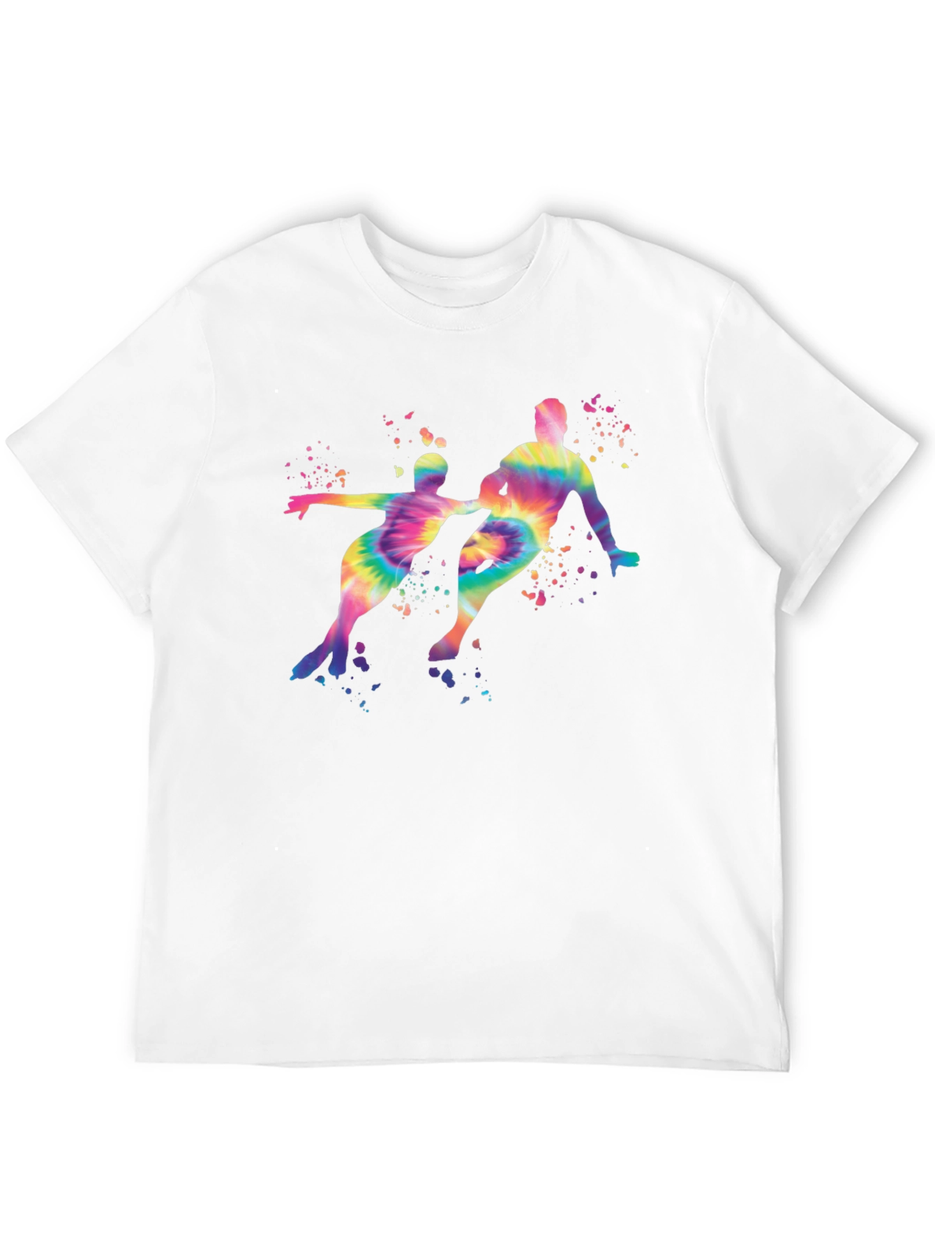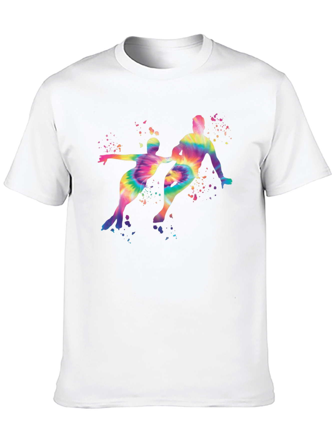 Show off your love for figure skating with this vibrant tee! The design features two skaters in a dynamic pose, rendered in a colorful tie-dye pattern. Splashes of paint add a whimsical touch. Made from a comfortable, breathable fabric, this shirt is perfect for casual wear, skating practice, or cheering on your favorite skaters at the rink. Stand out from the crowd and express your passion for this graceful sport with this unique and eye-catching t-shirt. Sure to grab attention and spark conversation!