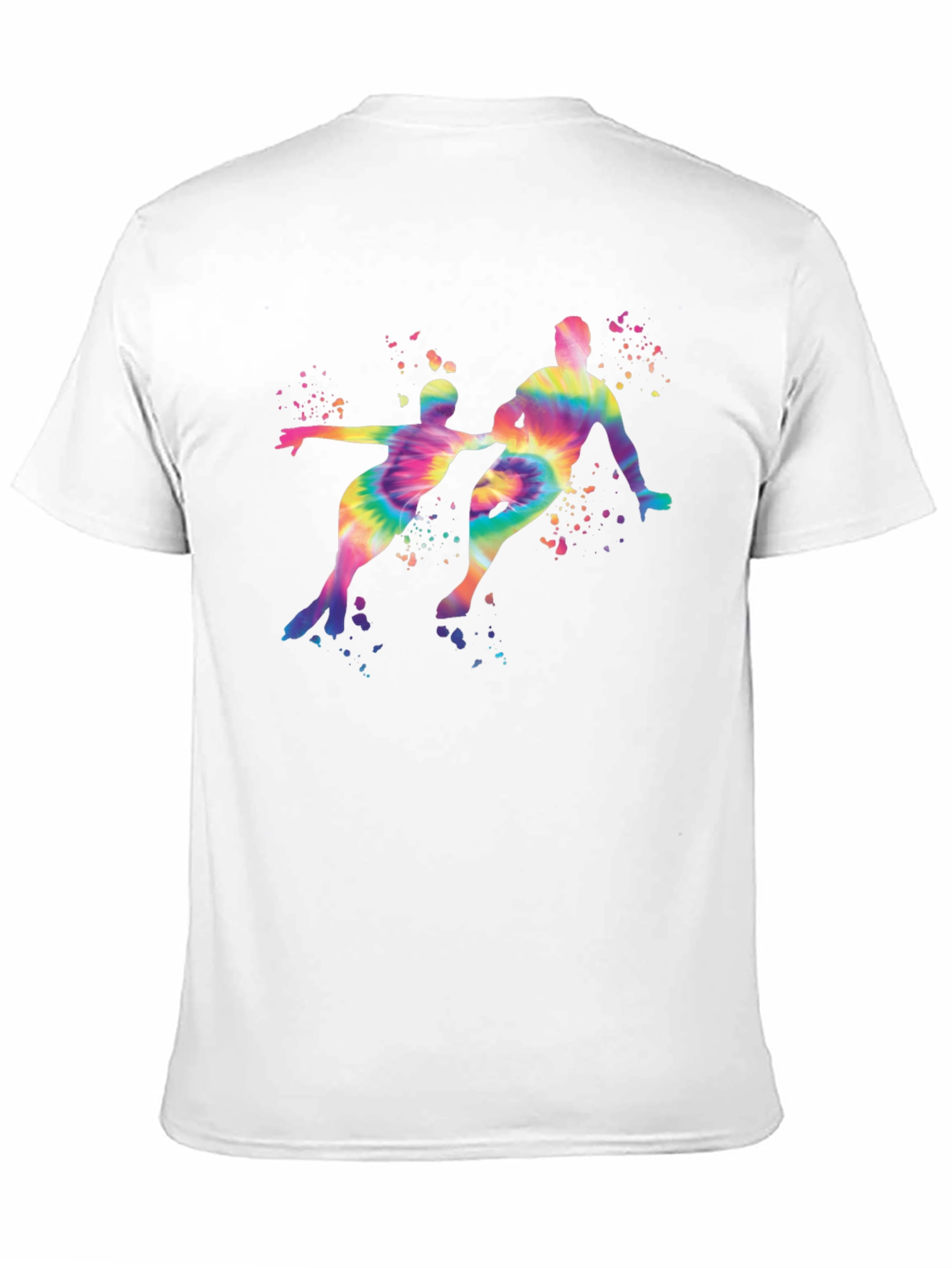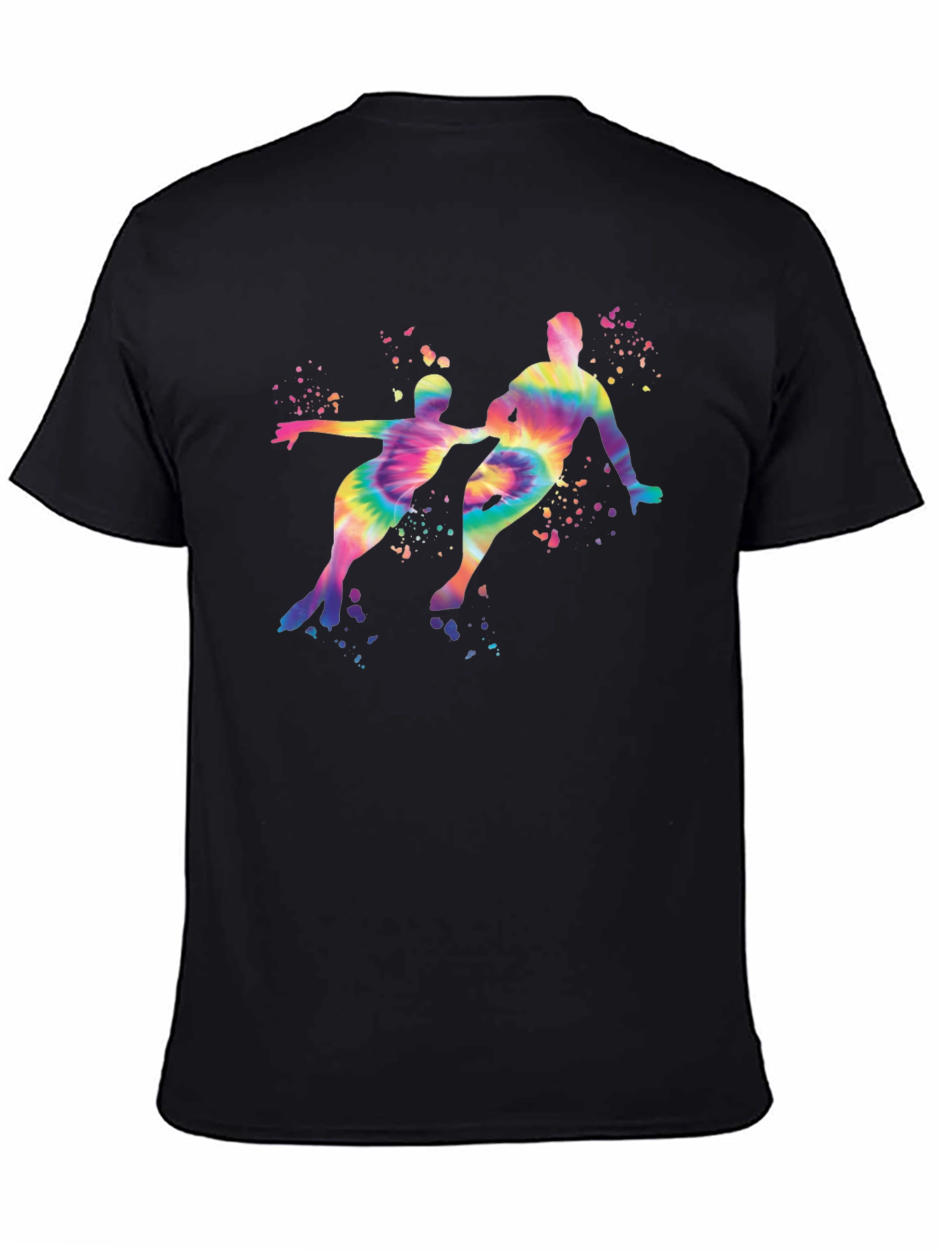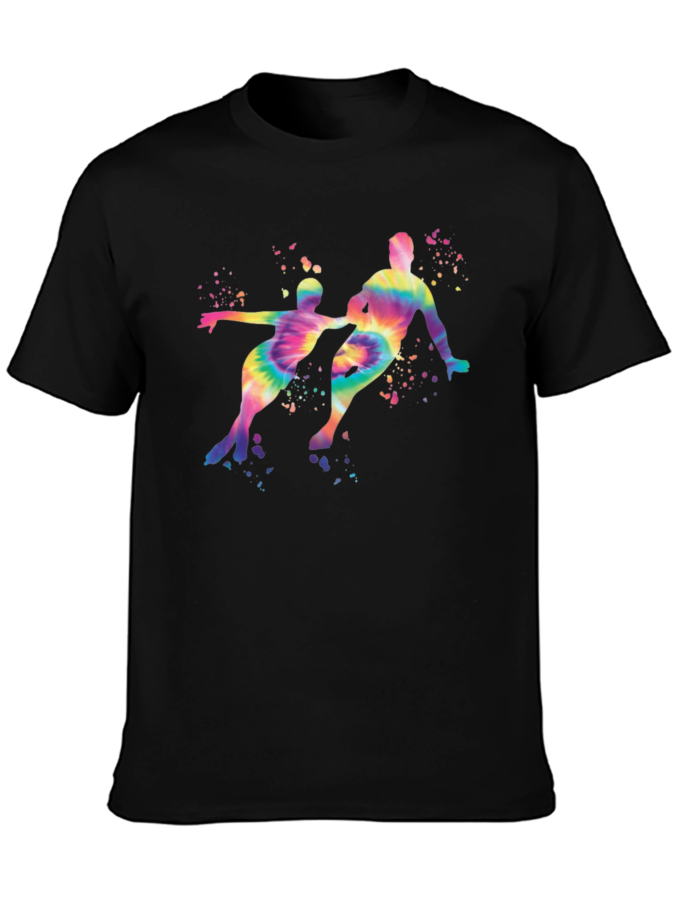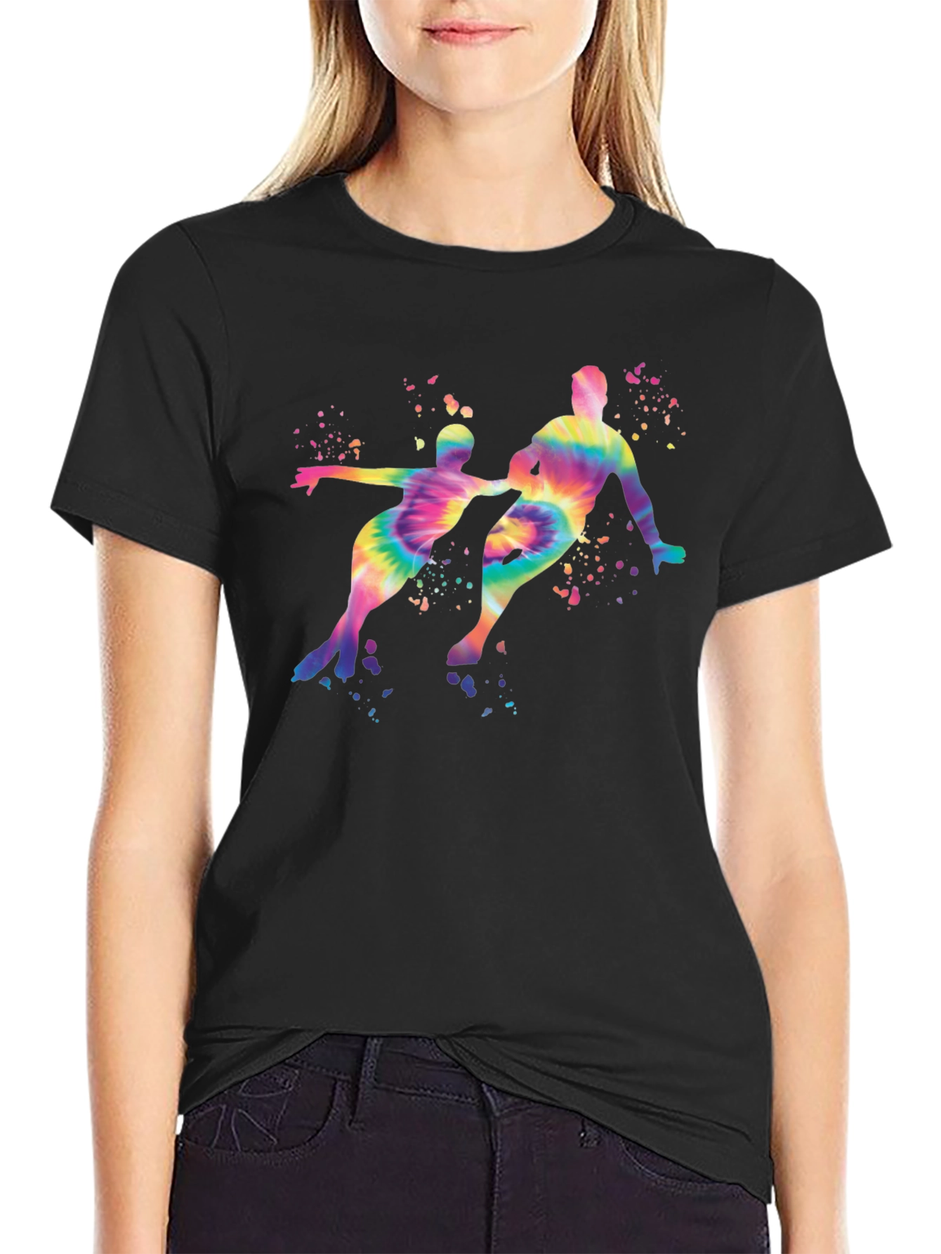 Show off your love for figure skating with this vibrant tee! The design features two skaters in a dynamic pose, rendered in a colorful tie-dye pattern. Splashes of paint add a whimsical touch. Made from a comfortable, breathable fabric, this shirt is perfect for casual wear, skating practice, or cheering on your favorite skaters at the rink. Stand out from the crowd and express your passion for this graceful sport with this unique and eye-catching t-shirt. Sure to grab attention and spark conversation!