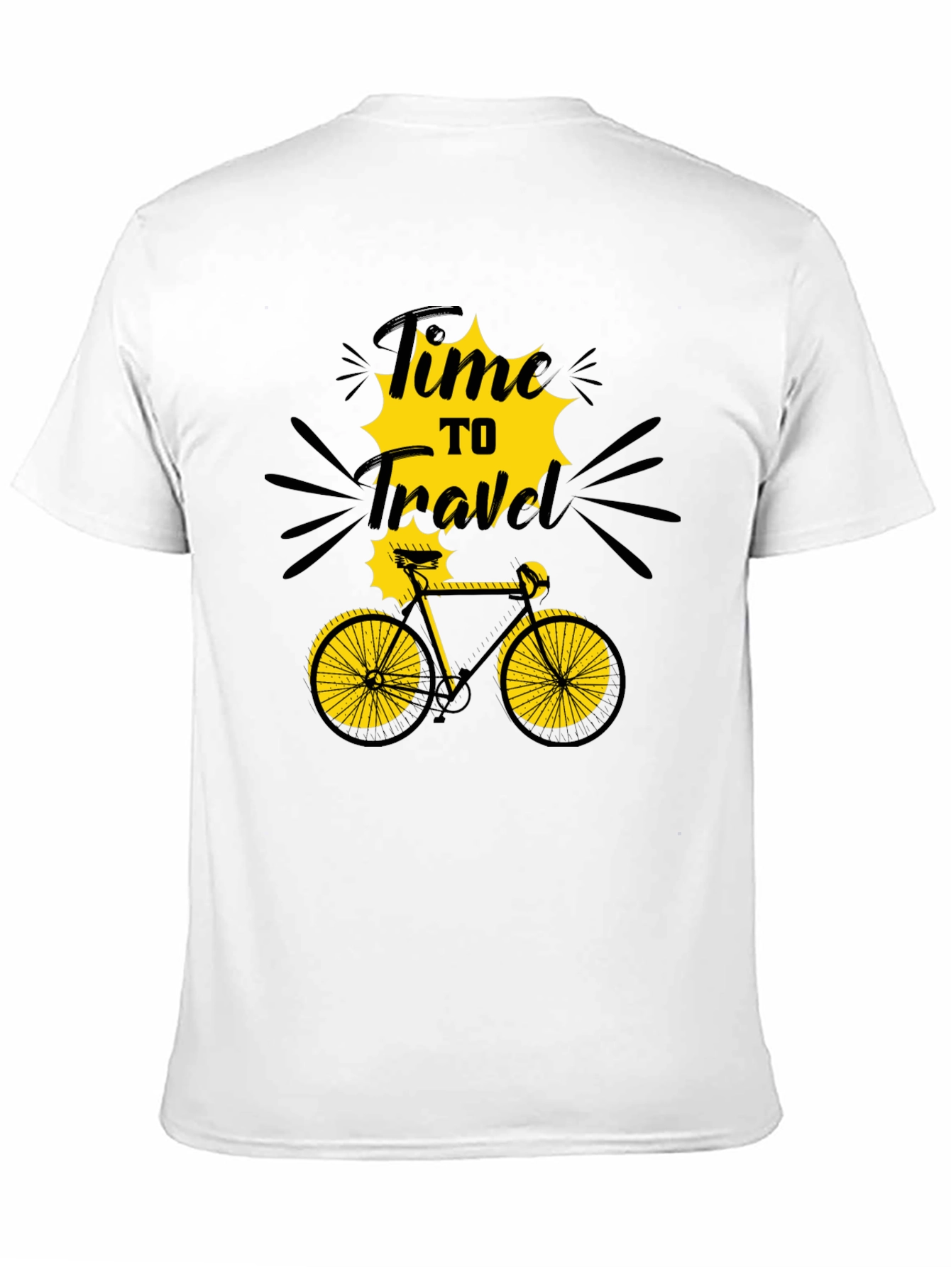 Embrace your wanderlust with this stylish black t-shirt featuring a vibrant "Time to Travel" graphic! A bold yellow bike design takes center stage, perfect for travel enthusiasts and adventure seekers. Crafted from comfortable fabric, this tee is ideal for casual outings, exploring new cities, or simply showing off your love for travel. The eye-catching design is sure to spark conversations and inspire your next journey. Elevate your wardrobe with this unique and expressive t-shirt, designed for those who live life on two wheels and dream of faraway places. Get ready to roll in style!